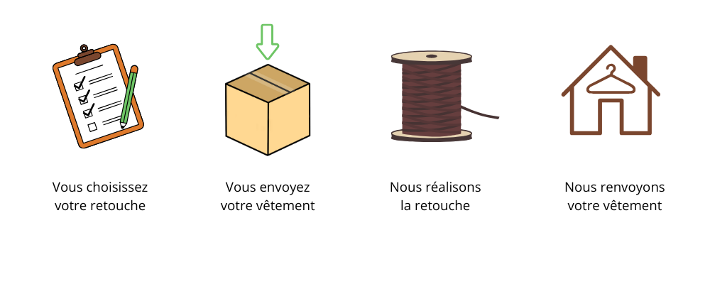 Vous choisissez votre retouche en ligne, vous nous envoyez votre vêtement, nous nous occupons du reste.